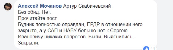 Впрочем, сведения о прекращении следственных действий в отношении экс-начальника Департамена полиции охраны все же просочились в Сеть. Накануне об этом на своей странице в Facebook написал пространный пост друг Будника – автогонщик Алексей Мочанов.