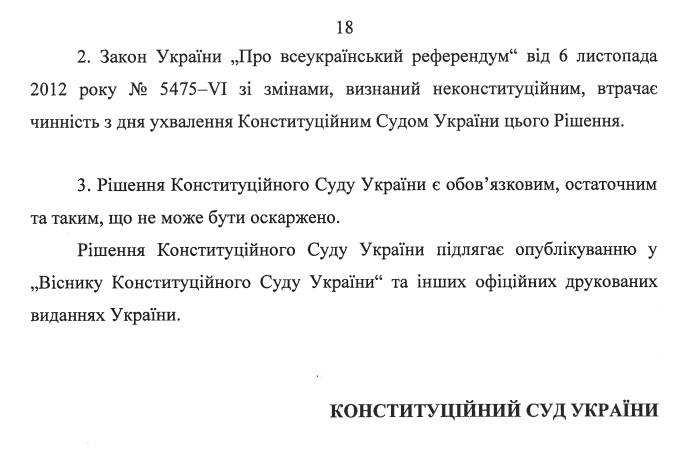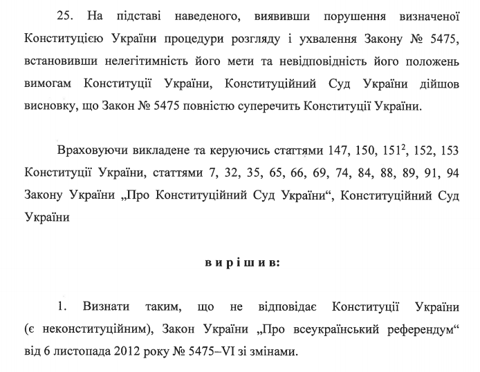 26 апреля Конституционный суд признал противоречащим Конституции закон "О всеукраинском референдуме".