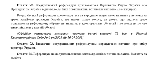 Еще ряд положений Конституции касаются отдельно всеукраинских и местных референдумов. О них мы расскажем ниже.