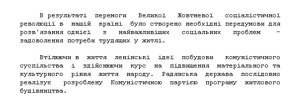 "В результате победы Великой Октябрьской социалистической революции в нашей стране были созданы необходимые предпосылки для решения одной из важнейших социальных проблем – удовлетворения потребности трудящихся в жилье.