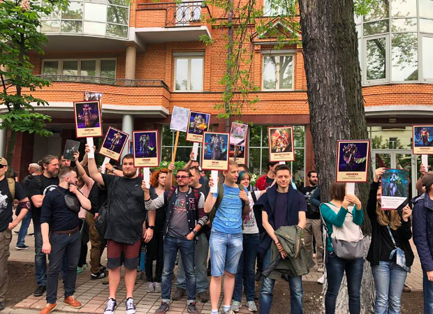 На сей раз члены "Братства", заблокированные полицией, только постояли в сторонке с картинками героев компьютерных игр, попытавшись выкрикивать "Нация превыше всего!", но их заглушило дружное скандирование участников "Бессмертного полка": "Фашизм не пройдет!".