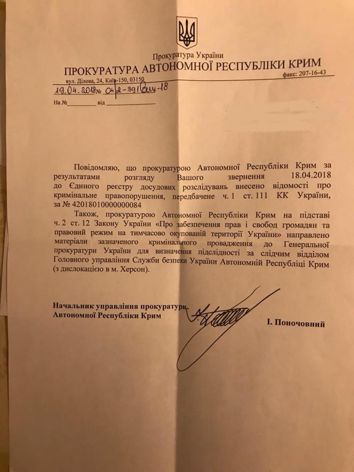 Трудившийся в ведомстве сначала начальником следственного отдела, затем - руководителем управления надзора в уголовном производстве, и наконец - замом прокурора Крыма "в экзиле" Александр Удовиченко уволился с занимаемой должности.
