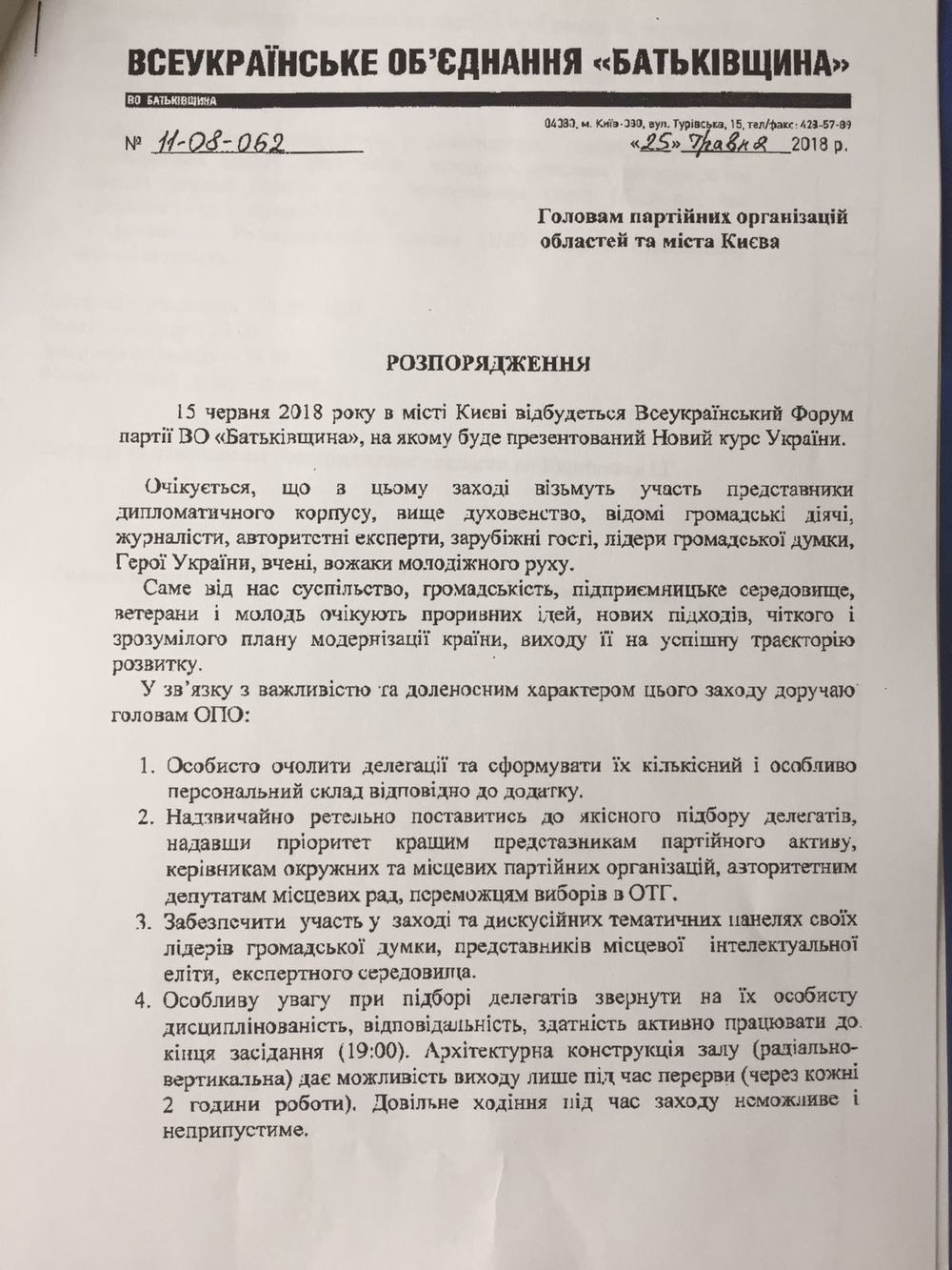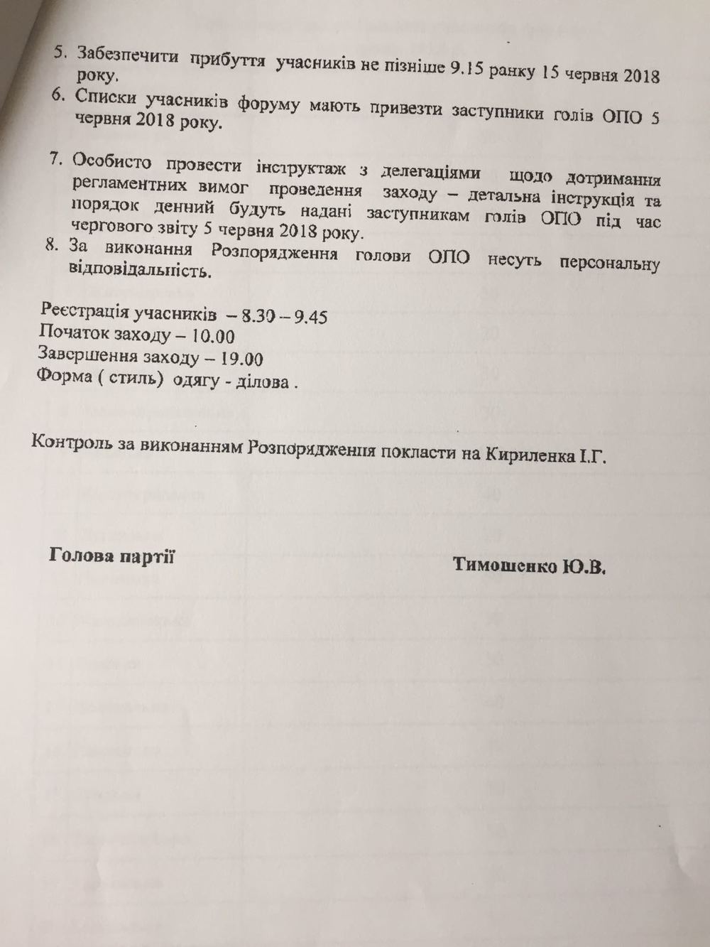 Однако, по информации "Страны", приедут они не одни, а с достаточно большими делегациями, которые также примут участие в обсуждении. Поэтому руководителей областных партячеек просят тщательно составлять списки, отдавая приоритет лучшим представителям партийного актива, руководителям окружных и местных партийных организаций, авторитетным депутатам местных советов, победителям выборов в объединенных территориальных общинах. Работа со структурами на местах возложена на первого заместителя Тимошенко в партии, народного депутата Ивана Кириленко.