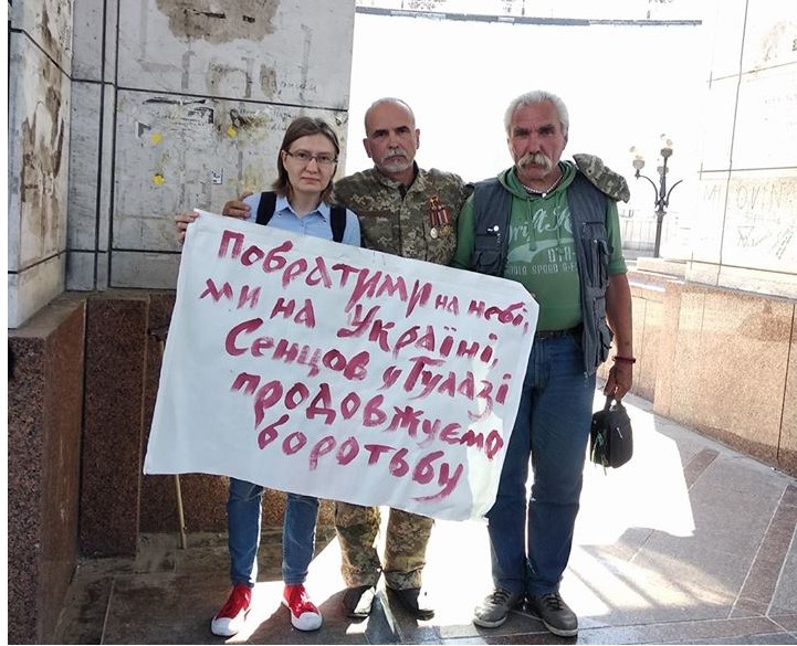 Сериков во время акции на Майдане в поддержку Олега Сенцова, источник фото: 24tv.ua