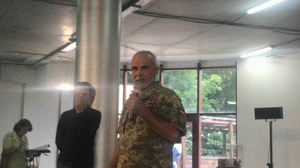 Среди пришедших находился и мужчина в камуфляжной форме, который поначалу с кем-то громко спорил и по внешнему виду "выбивался" из аудитории мероприятия.