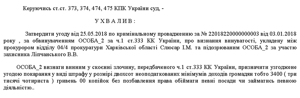 Обвиняемый конструктор согласился с обвинением и признал свою вину. В результате он пошел на сделку с прокурорами, и суд приговорил пенсионера к штрафу в 3400 гривен, даже не лишив права занимать какие-либо должности: