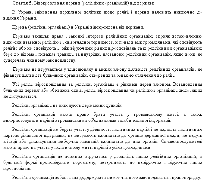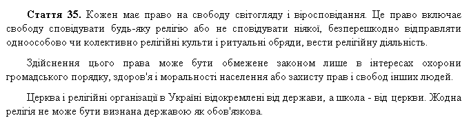 По идее, церковь и религиозные организации в Украине должны быть отделены от государства. Такая норма содержится в статье 35 Конституции Украины: