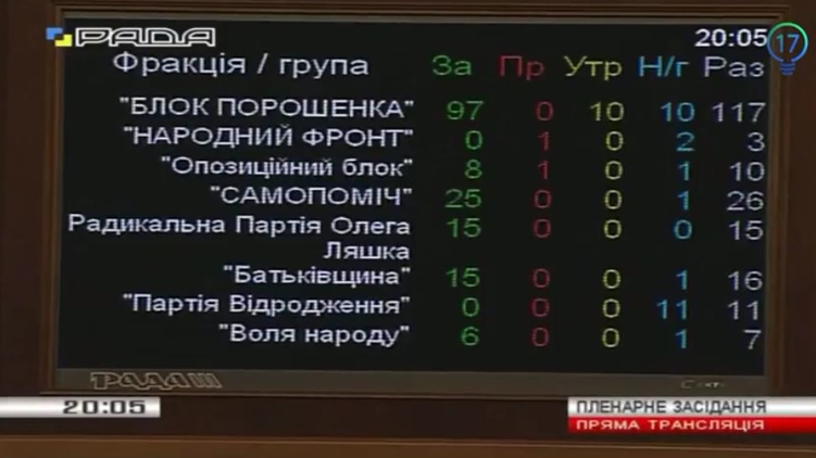 Парламент 247 голосами признал работу Кабмина неудовлетворительной, но сама резолюция о недоверии Яценюку, принятие которой означало его автоматическое увольнение, провалилась. За нее проголосовали лишь 194 народных избранника при 226-ти необходимых. Неудачное голосование продлило жизнь правительству Яценюка до осени, так как по закону нельзя дважды в течение одной пленарной сессии Рады ставить вопрос о вотуме доверия министрам. Нынешняя – четвертая - сессия продлится до июля, но пятая начнется только в сентябре.