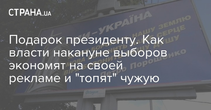 В качестве примера аналитик по партийным финансам общественной организации "Честно" Игорь Фещенко приводит известную рекламу Петра Порошенко "Армія, мова, віра", которой увешаны борды по всей стране. По словам эксперта, от этой рекламы и в Администрации президента, и в самом БПП дистанцировались - мол, размещают не они, а кто - сами не знают. Не иначе, как некие таинственные доброжелатели. Впрочем, общественники смогли найти подтверждение тому, что эту рекламу (как и другую похожую по стилистике) на места не только спускают сверху, но еще и дают указания размещать как "социальную", то есть, бесплатно. А вот некоторые другие политсилы не могут попасть на борды даже за большие деньги. Опять таки - по причине "негласных указаний" властей.