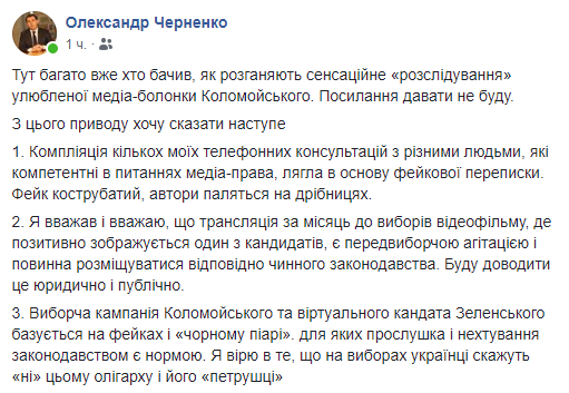 Вместе с тем, сам КИУ уже успели обвинить в попытке “торпедировать” показ сериала Зеленского по указанию Банковой. Журналист “1+1” Александр Дубинский выложил на своей странице в Фейсбуке материалы, которые связывают бывшего главу КИУ, а ныне депутата от пропрезидентской партии “Блок Петра Порошенко” Александра Черненко с выходом заявления на тему Зеленского. По мнению Дубинского, за Черненко, а следовательно и за заявлением КИУ о сериале стоит команда президента.