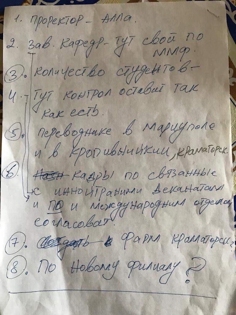 Среди них - назначение на должность проректора по международным связям гражданской супруги пакистанца, невмешательство в текущий порядок дел в кампусе Кропивницкого, отказ от переноса международного факультета в Краматорск и т.д. Отреагировали на своенравное поведение Кондратенко и "чекисты".