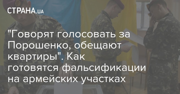 "Однако в приватных беседах армейского начальства со всеми командирами частей невзначай было подчеркнуто, что Порошенко – главнокомандующий, его основная цель – поднять армию, также были обещаны внеочередные квартиры командирам частей и повышения в должностях, если показатели будут соответствующими - речь идет о тех же 70 – 80 процентах голосов за действующего президента. Также были недвусмысленные намеки, мол, если он проиграет на участке, который находится в данной части в ООС, то командирам обо всем, что было обещано, придется забыть", - рассказывают "Стране" собеседники.