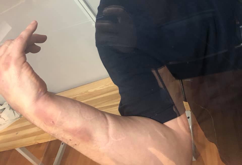 Травмы, которые нанесли силовики в ходе задержания одному из подозреваемых по делу о подрыве машины на Теремках и его матери, источник фото: facebook.com/shadrin.sasha