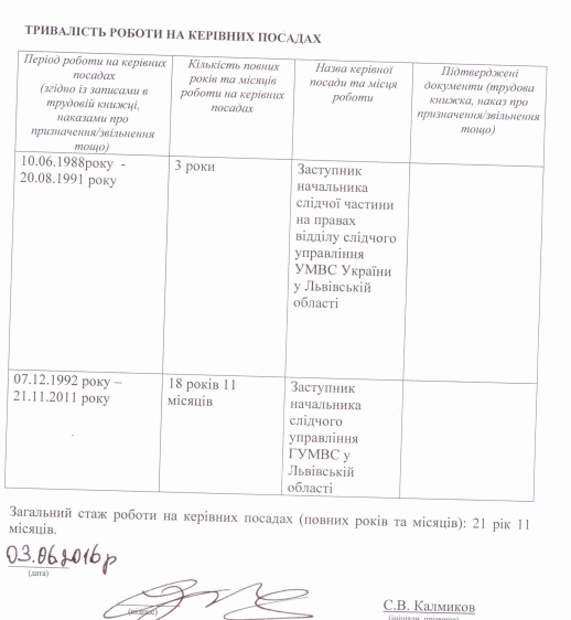Сергей Калмыков, тесть нового начальника таможни Нефедова, больше 20 лет работал заместителем начальника следственного управления ГУМВД Львовской области. С 2011 года он вышел на пенсию и занялся адвокатской деятельностью. Об этом тесть чиновника сообщил в своей автобиографии, которая размещена в открытом доступе на сайте Кабмина. Автобиографию он подавал для участия в конкурсе на должность директора Государственного бюро расследований: