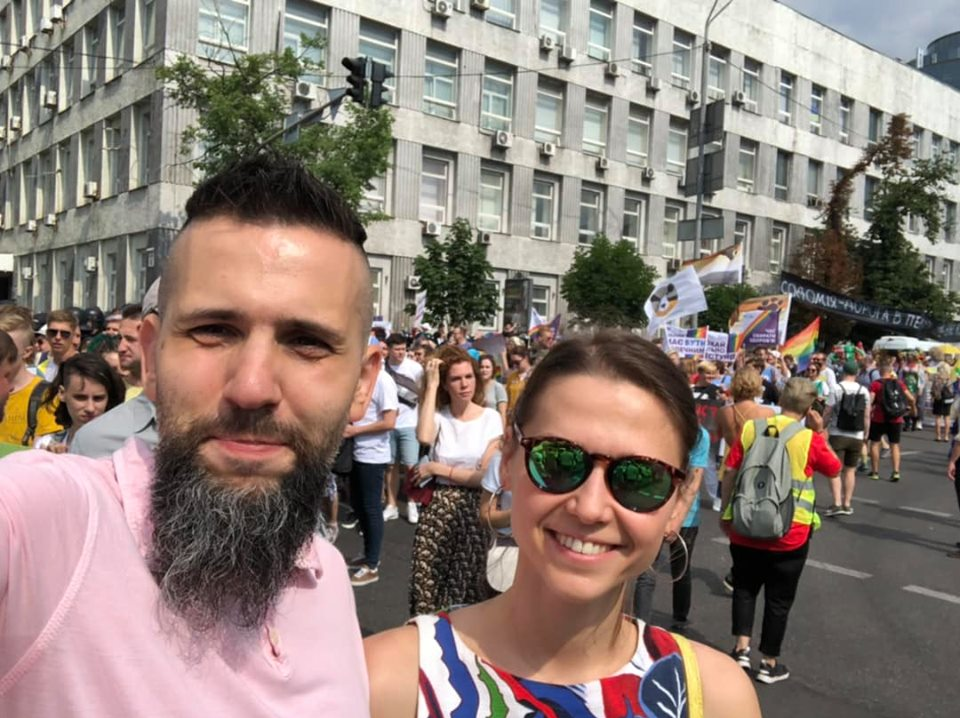 Максим Нефедов и Яна Калмыкова на ЛГБТ-параде в Киеве. Фото: facebook.com/max.nefyodov