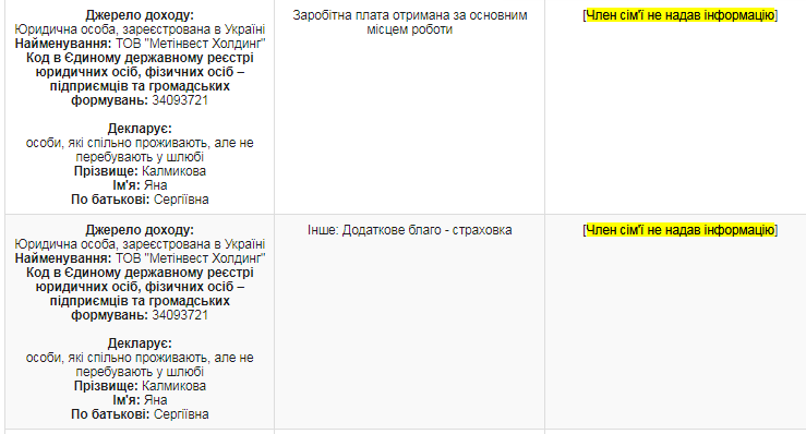 В своей декларации за 2017 год Максим Нефедов указал, что его гражданская жена Яна Калмыкова работает в "Метинвест холдинге".