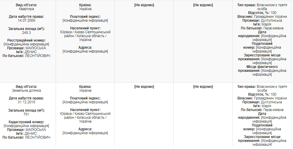 А огромная квартира почти в 250 квадратов и участок 7,8 соток в селе Юровка Киево-Святошинского района, пользование которыми тоже задекларировал министр, оформлены на некую Марию Духтулинскую:
