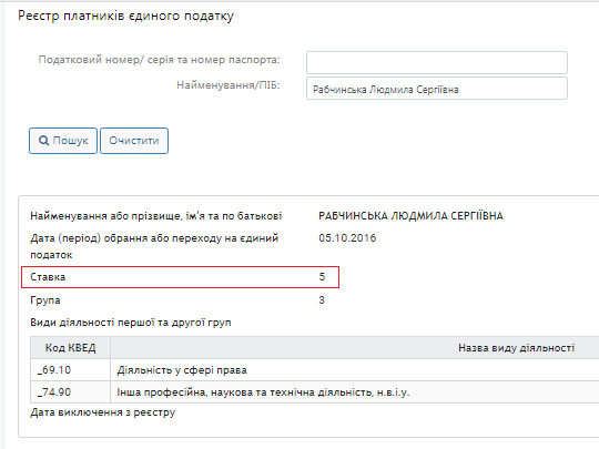 Данный вывод косвенно подтверждается данными реестра плательщиков единого налога, который размещен на сайте фискальной службы. Там указано, что супруга нового министра юстиции стала плательщиком единого налога по ставке 5% с октября 2016 года: