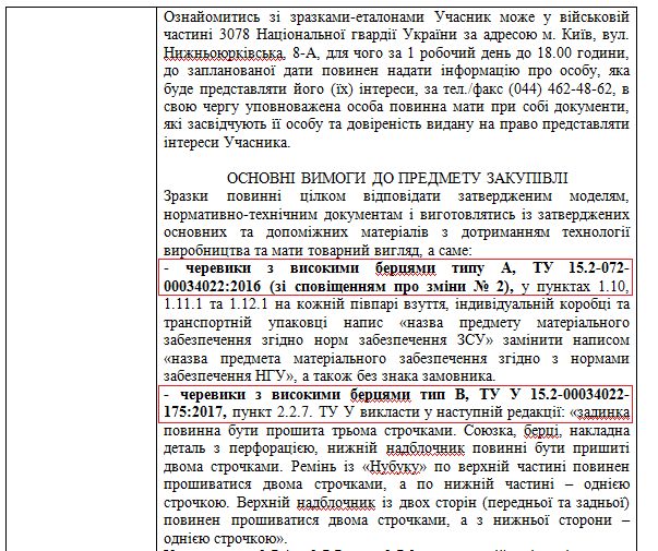 Цены на обувь выросли: 25 тыс пар демисезонных ботинок по все тем же техническим условиям ТУ 15.2-072-00034022:2016 были проданы по 1815 грн за пару. А 13 тыс пар летних ботинок силовики взяли по  цене 1596 грн.