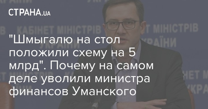 "Шмыгаль "водил козу" две недели, рассказывая, что не время, что он еще поговорит, с кем нужно. Однако вскоре тему спустили на тормоза, а против Уманского начались интриги. Вскоре его уволили. Официальная причина из уст Шмыгая, которую он назвал на последней встрече с президентом: не сработались. Неофициальная — "кумовской шкурняк". Оказалось, что кум Шмыгаля — имеет отношение к этим схемам", — рассказывает источник.