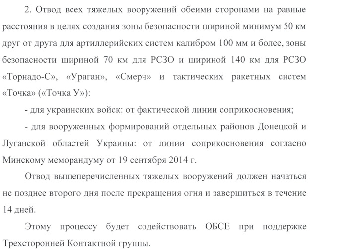 О разведении войск говорилось в пункте 4 соглашения "Минск-1" и пункте 2 "Минска-2". Правда, речь там шла только об отводе тяжелой артиллерии и систем залпового огня: