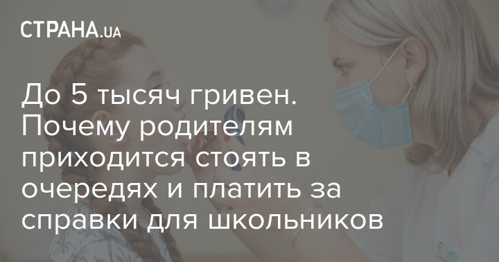 В украинских поликлиниках - ажиотаж. Родители жалуются, что в школах с них требуют справки о медосмотре детей. Причем о том, что без справки, оказывается, не допустят к занятиям, многих предупредили только недавно, поэтому люди массово ринулись в медучреждения.