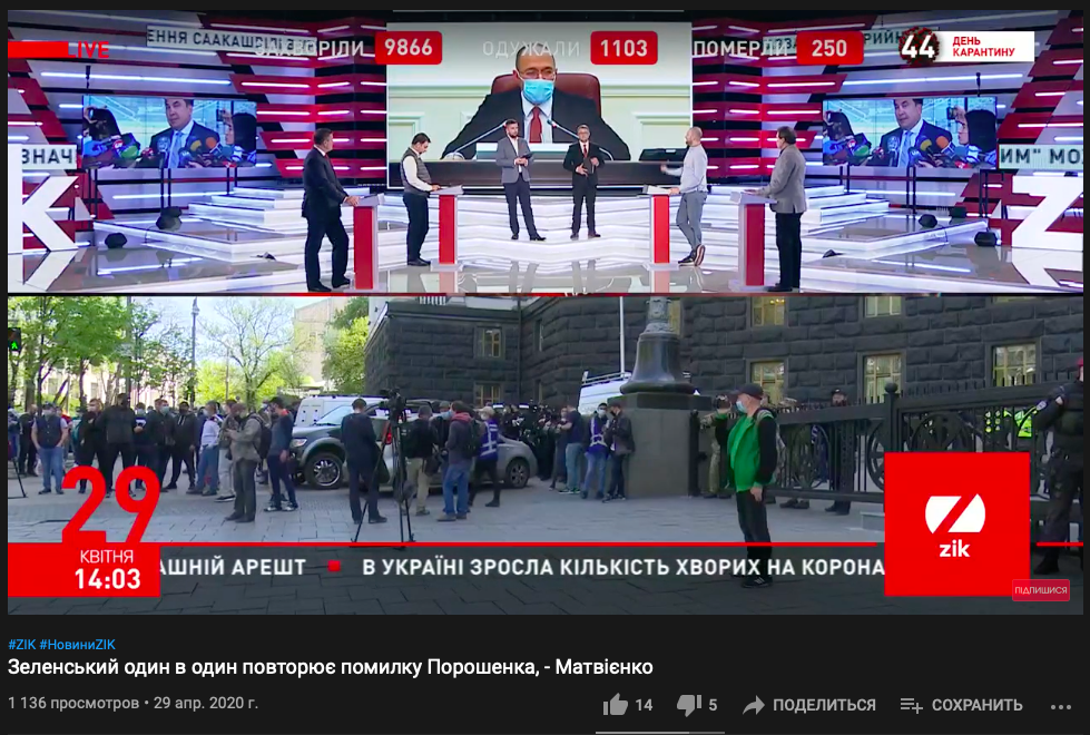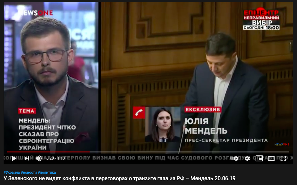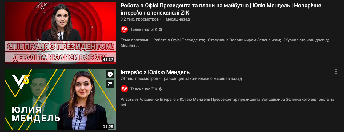 Буквально за месяц до блокировки трех телеканалов пресс-секретарь президента Юлия Мендель давала эксклюзивное интервью телеканалу ZIK. А за полгода до этого на том же канале вышло еще одно большое интервью с Мендель.