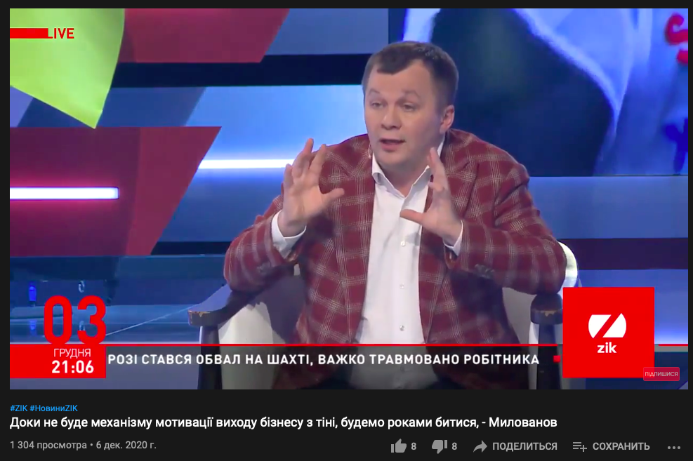 Последний раз экс-министр экономики Тимофей Милованов был на эфире ZIK в ток-шоу "Ми всі українці" два месяца назад. Тогда же появлялся на "112" и на NewsOne.