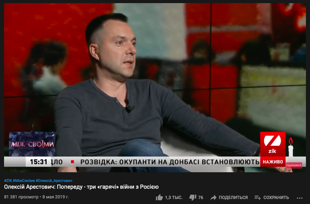 Хотя Арестович несколько лет назад вел авторскую программу "Наш час" на NewsOne. А год назад давал эксклюзивное интервью телеканалу ZIK. Также Арестович давал комментарий NewsOne уже после покупки канала Тарасом Козаком (эфир был 28 ноября 2018, а сделка была совершена 12 октября).