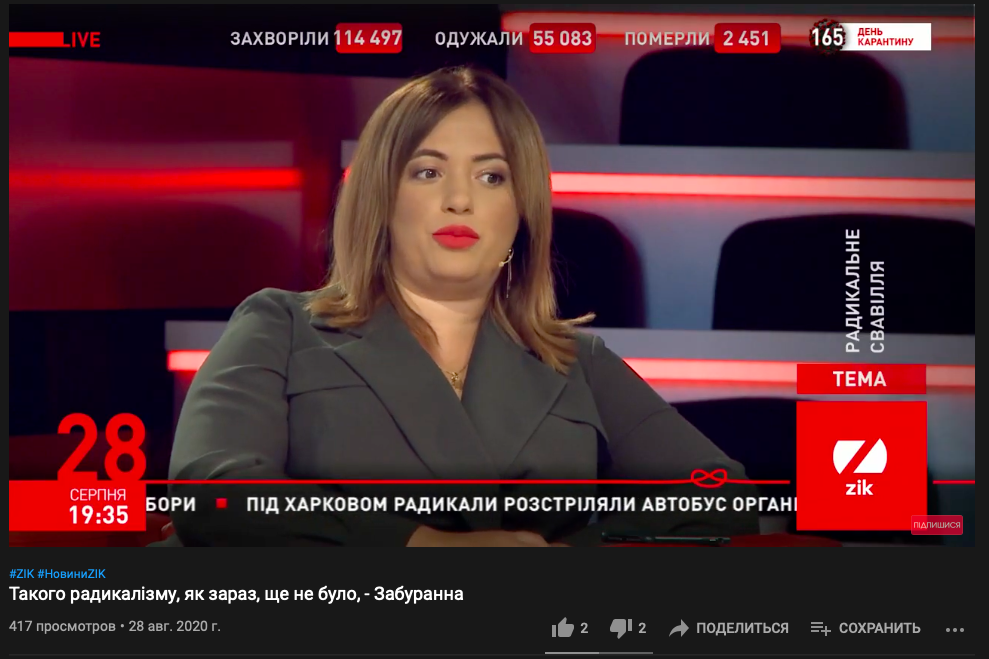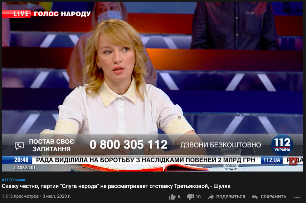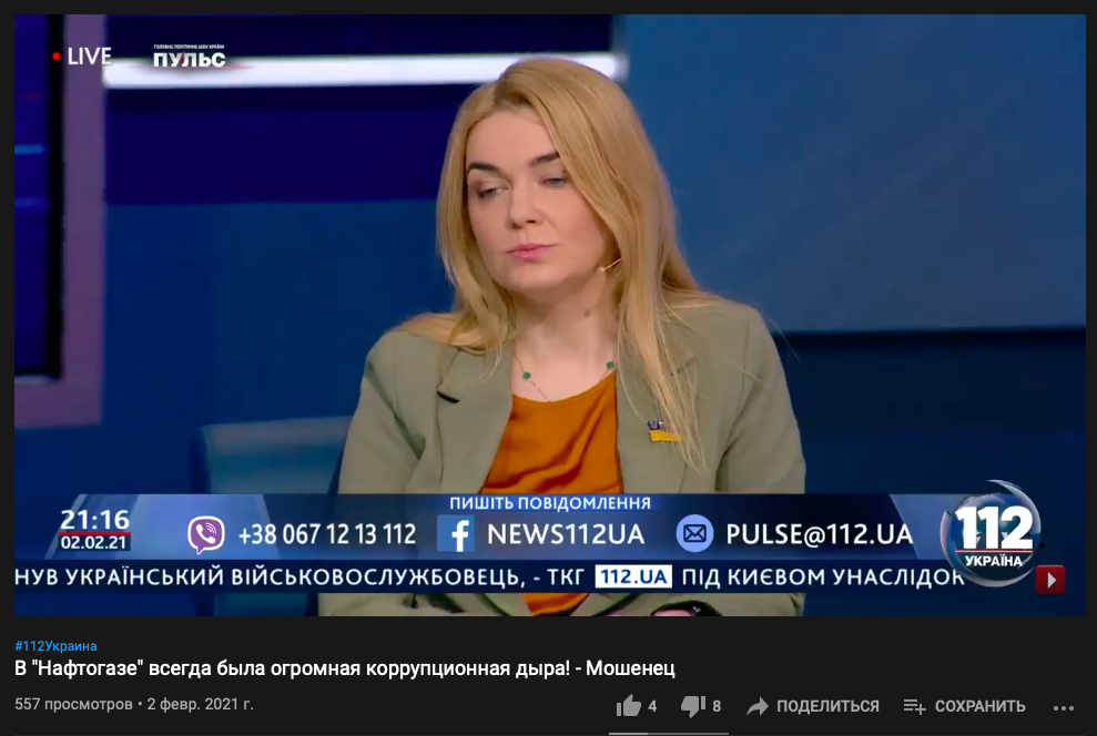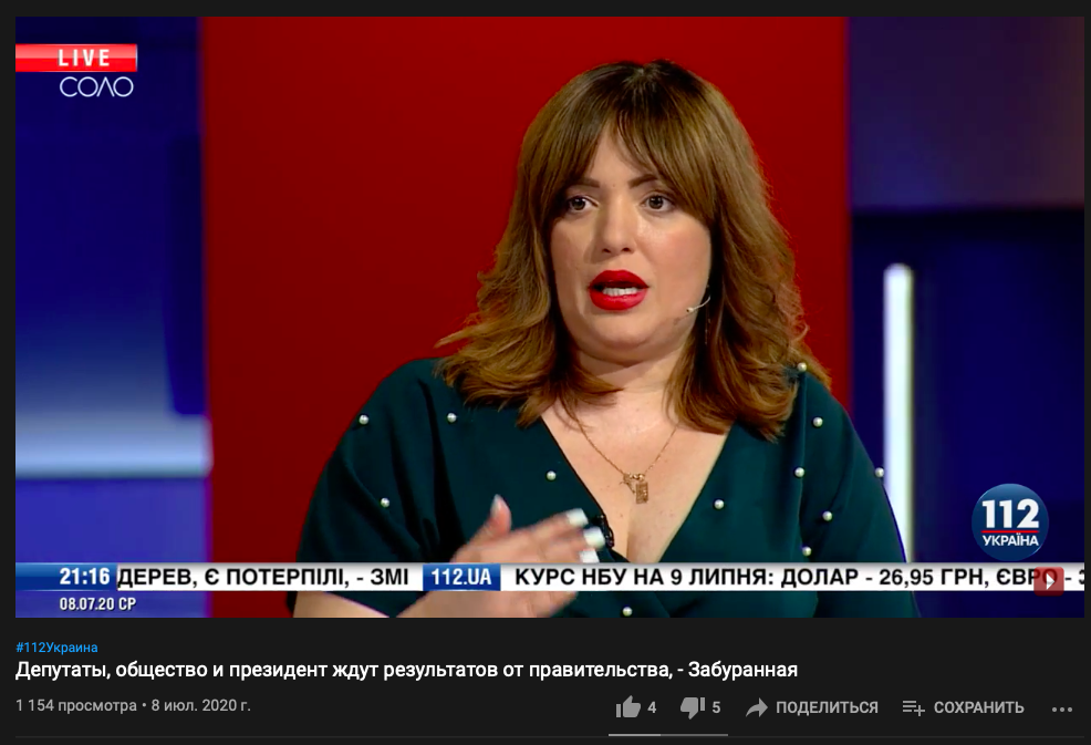Так, каналам ZIK "112" она давала комментарии всего месяц назад. А в студии NewsOne была всего за неделю до блокировки.