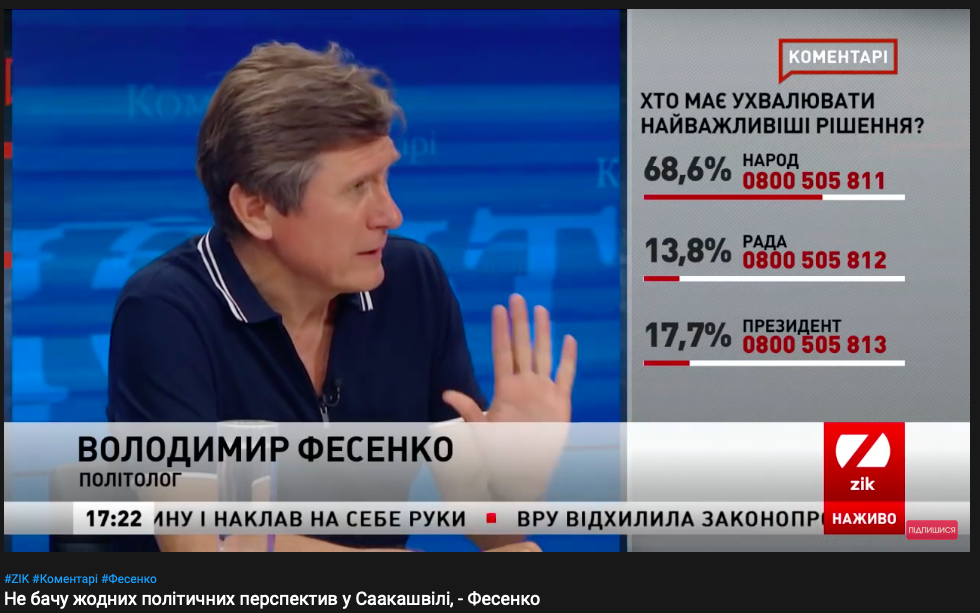 Политолог Владимир Фесенко был гостем политических ток-шоу на всех трех телеканалах. Но это не мешает ему поддерживать их блокировку.