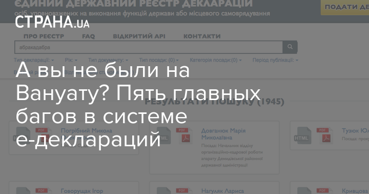 В чем проблема. Нашумевшая история с гражданством тихоокеанского острова Вануату некоторых украинских чиновников вскрыла существенный сбой в системе электронного декларирования. Журналисты, порывшись в реестре деклараций, обнаружили, что родственники некоторых чиновников имеют гражданство тихоокеанского государства Вануату. При проверке в Нацагентстве по вопросам противодействия коррупции (НАПК), которое отвечает за реестр, оказалось - сведения появились из-за бага. Оказалось, каждому государству в реестре соответствует цифровой код. В определенный момент эти коды стали отображать не те страны, за которыми они закреплены.