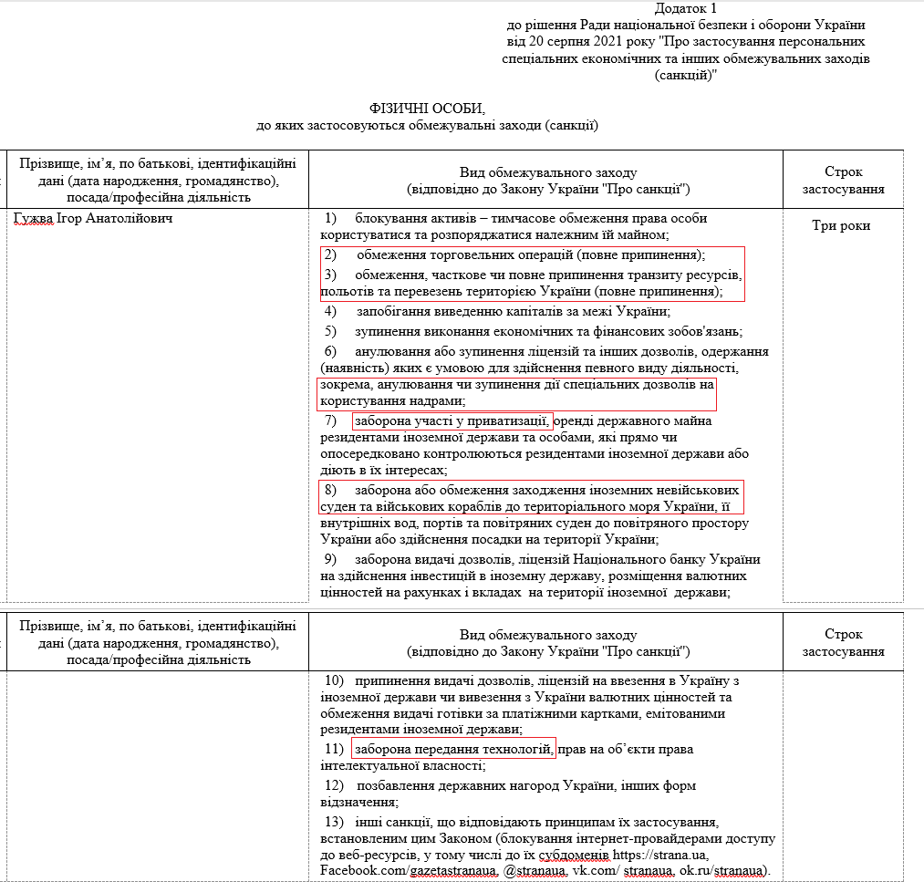 Указы Зеленского о санкциях против Игоря Гужвы и Страны
