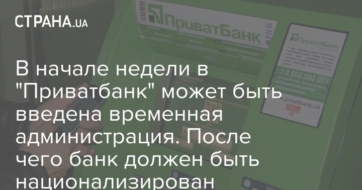 Тем временем, источники "Страны" в Национальном банке и в Фонде гарантирования вкладов, подтверждают информацию, что в начале следующей недели в "Приватбанке" может быть введена временная администрация. А к концу недели банк должен быть национализирован.
