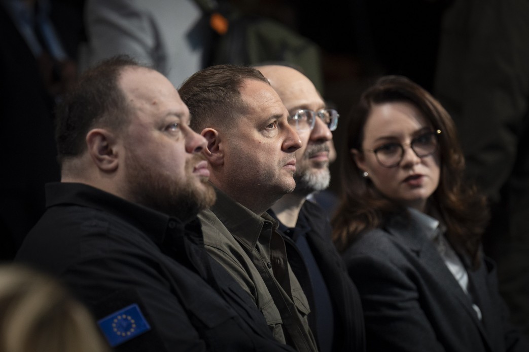 Спикер Руслан Стефанчук (крайний слева) заслужил похвалу главы ОП Андрея Ермака (второй слева). Фото: president.gov.ua