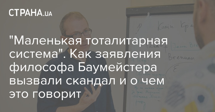 "Задача философов мыслить, выходя за рамки пропагандистских шор. Но у нас за такие попытки просто клеют "ярлыки" как на Баумейстера, так и, например, Дацюка (философ Сергей Дацюк - Ред.), не воспринимая их позицию по разным вопросам. Другое дело, что Баумейстер в своем интервью выразил не просто свои настроения, а целой части общества, которую власть исключает. Именно о политике исключения говорил философ. Сначала исключаются группы населения, потом медиа, референтные для них, потом партии. Теперь дошли до Церкви. Этот курс можно называть по-разному", - комментирует политолог Андрей Золотарев "Стране".