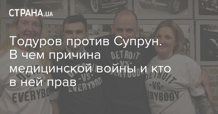Ирония состоит еще и в том, что сперва Тодуров написал этот пост под комментариями одной из фотографий Супрун, на которой она и ее коллеги в футболках с надписью "Детройт против всех" (слова из известной американской песни, Детройт - родной город Супрун), за что и.о. министра внесла выдающего кардиохирурга в "черный список" на своей странице в ФБ.