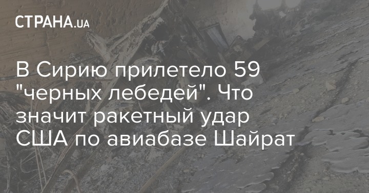 "Черный лебедь" – термин, обозначающий событие, которое невозможно спрогнозировать, за которым следуют значительные последствия, при этом постфактум оно описывается как такое, которое следовало ожидать. Понятие ввел американский экономист Нассим Талеб. Термин прижился как описание победы Дональда Трампа на выборах президента США. Этой ночью Трамп отправил на сирийскую авиабазу Шайрат 59 "черных лебедей".