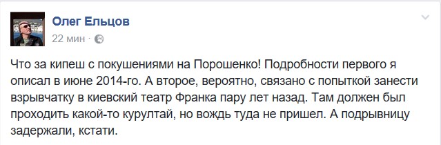 Никаких упоминаний о "замахе" на Порошенко в комментариях чекистов тогда не фигурировало. Но как знать - может быть, в "конторе" таким образом перестраховывались. Или сознательно не договаривали.