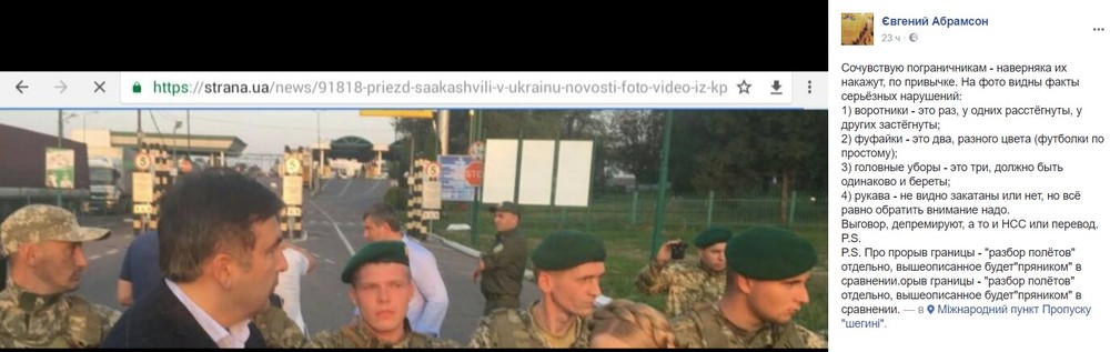 По словам одного из пограничников, который несет службу на западном кордоне, действия властей по недопущению любой ценой Саакашвили в Украину привели к цепи событий со стороны должностных лиц, которые должны получить правовую квалификацию.