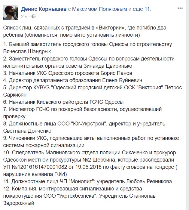 Правоохранители и высокие чины обещают, что все виновные понесут наказание. Местные журналисты, в свою очередь, уже составляют список тех лиц, которые по их мнению, имеют отношение к трагедии. В настоящее время он включает в себя 12 персоналий.