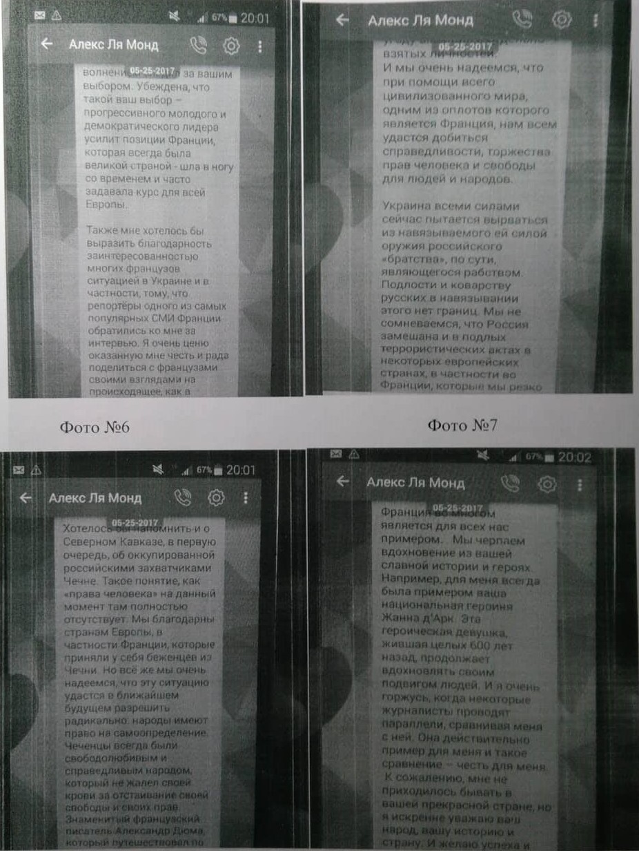 Впрочем, содержащаяся в материалах дела переписка между "французом" и "добробатовцами" не содержит таких сведений. Напротив, здесь они мило общались, рассыпаясь друг друг в комплиментах и знаках внимания.