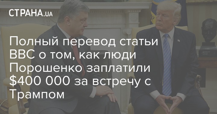 Весь вечер Украина обсуждает статью ВВС о том, что люди Порошенко якобы заплатили 400 000 долларов адвокату Трампа за короткую встречу с американским президентом. В АП отрицают сам факт и требуют опровержения.