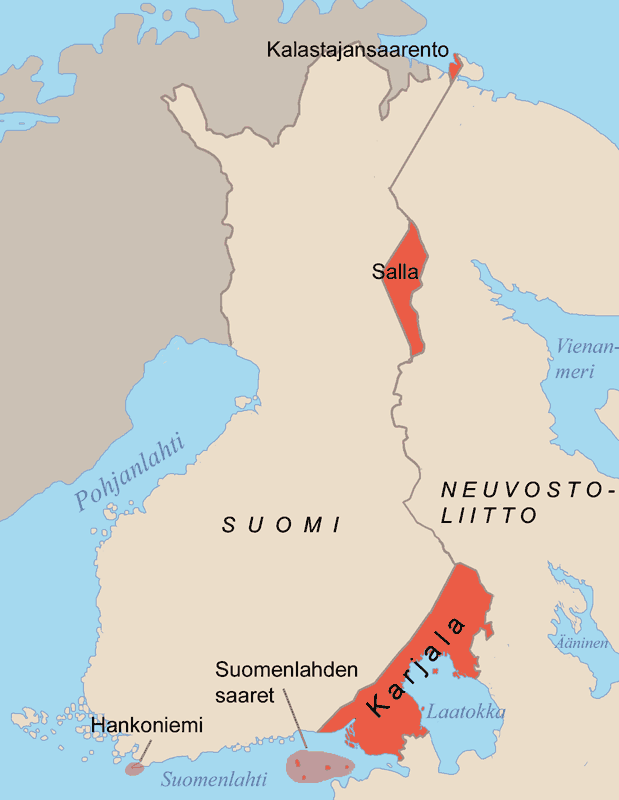 - Передача Советскому Союзу западной части полуострова Рыбачий в районе Петсамо (Печенга) на северо-востоке Финляндии.