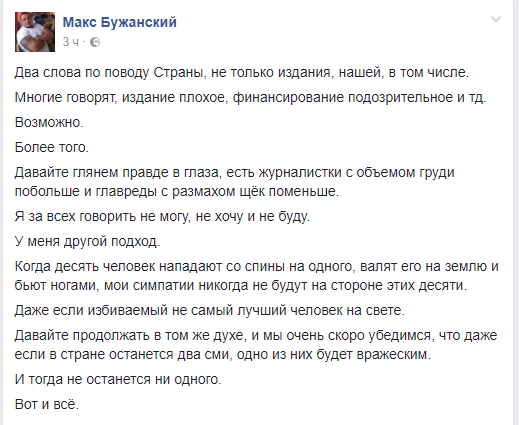 "Два слова по поводу Страны, не только издания, нашей, в том числе.