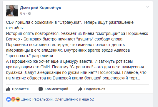 Соцсети троллят СБУ за очередные обыски в издании "Страна.ua". Фото: Елена Лукаш / Facebook