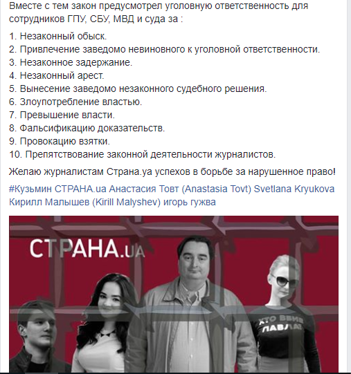 В Украине есть место огромному количеству СМИ, и уж тем более есть место для СТРАНА.ua. Абсолютной глупостью является стремление уничтожить независимое СМИ."