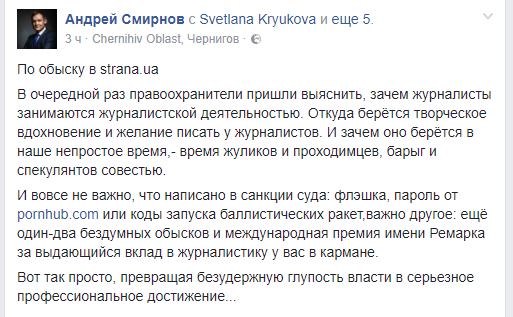 "Сегодня обыскивали не только редакцию Страна.ua, но и квартиры журналистов издания.