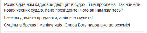 Розповідає нам кадровий дефіцит в судах - і це проблема. Так найміть нових чесних суддів, пане президенте! Чого ви нам жалітесь?