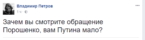 Телеведущий Владимир Петров задается вопросом: "Зачем вы смотрите обращение Порошенко, вам Путина мало?"